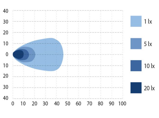 Tasainen ja leveä valokuvio – hyvä näkyvyys työalueelle