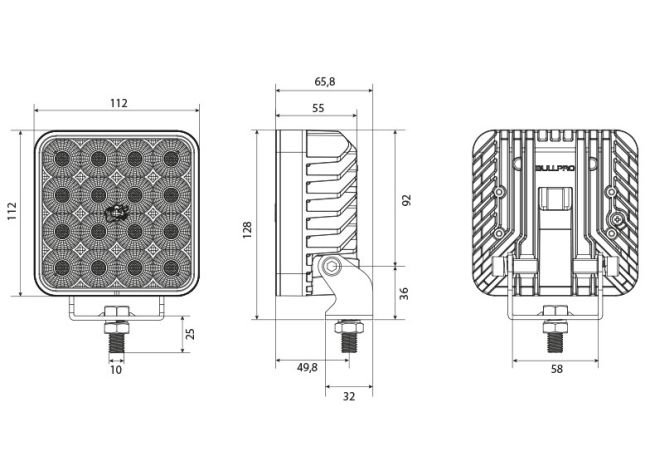 Bullpro Spectrum -sarjan työvalot on suunniteltu tuottamaan mahdollisimman paljon valoa pienessä ja siistissä paketissa. Spectrum Square 96 tarjoaa huippuunsa viritetyn leveän valokeilan, joka soveltuu erinomaisesti peruutusvaloksi ja aktiivisen työskentelyalueen valaisuun. Moderni muotoilu, metallinharmaa pinnoite ja tumma optiikka tekevät valaisimesta sekä tyylikkään että huomaamattoman.