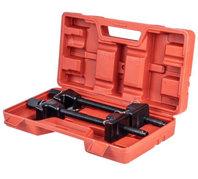 Kestävä ja turvallinen jousipuristinsarja MacPherson-kierrejousien irrotukseen ja asennukseen. Valetut, lukittavat tartuntakynnet varmistavat pitävän otteen jousesta ja lisäävät työskentelyn turvallisuutta.