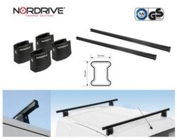 Tukevat Nordrive taakkatelineet kahdella neliö teräsputkella ammattikäyttöön. Kantavuus 100 kg. Nopea asennus ja pakkauksessa hyvät asennusohjeet ja lukkosarja. Putken koko 32 x 39 mm. ja sarjan paino 11,1 kg. Lisävarusteena saatavilla kuorman rajaajat, tuuliohjaimet ja kuormausrullat taakse.
