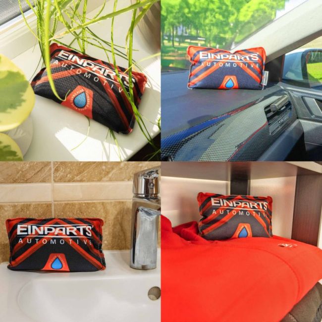 Kosteudenpoistajassa on selkeä täyttymisen ilmaisin, joka vaihtaa väriä sinisestä vaaleanpunaiseksi, kun granulaatti on kyllästynyt. Lisäksi tuote sisältää hajua neutraloivan kerroksen, joka auttaa ehkäisemään epämiellyttäviä hajuja, hometta ja ruostumista.