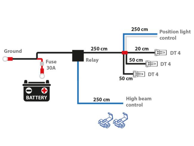 Tehokkaat 4 mm² syöttöjohdot varmistavat häiriöttömän virransyötön myös suuritehoisille lisävaloille. Mukana toimitettava 12V / 40A rele ja roiskevesitiivis sulakerasia + 30A sulake tuovat turvallisuutta ja luotettavuutta kaikkiin asennuskohteisiin.