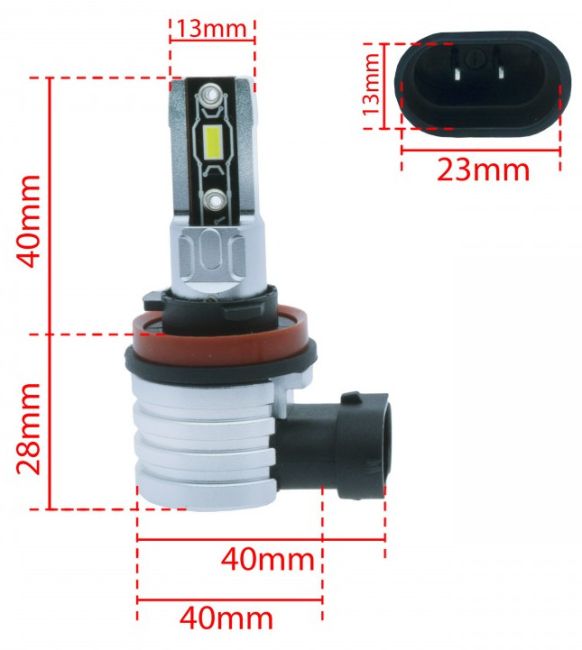 H11/H8/H9 led poltin helppoon asennukseen. Parempi valoteho ja pitkäikäisempi kun normaali halogenpoltin. Tarkka valokuvio. Mittatiedot kuvissa.