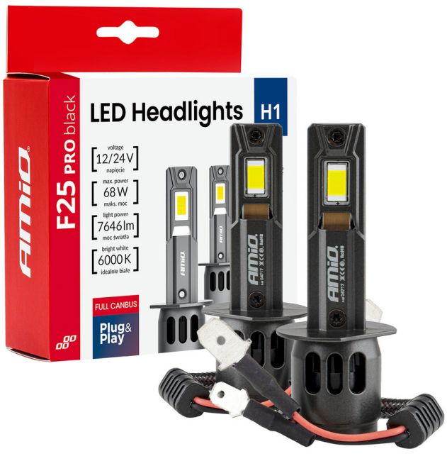 F25 PRO BLACK Edition H1 LED -ajovalot ovat edistyksellinen valonlähde ajoneuvojen ajovaloihin. Sisäänrakennettu FULL CANBUS -järjestelmä takaa täydellisen yhteensopivuuden ajoneuvoihin, joissa on palaneen lampun valvontajärjestelmä – ilman virheilmoituksia tai häiriöitä.