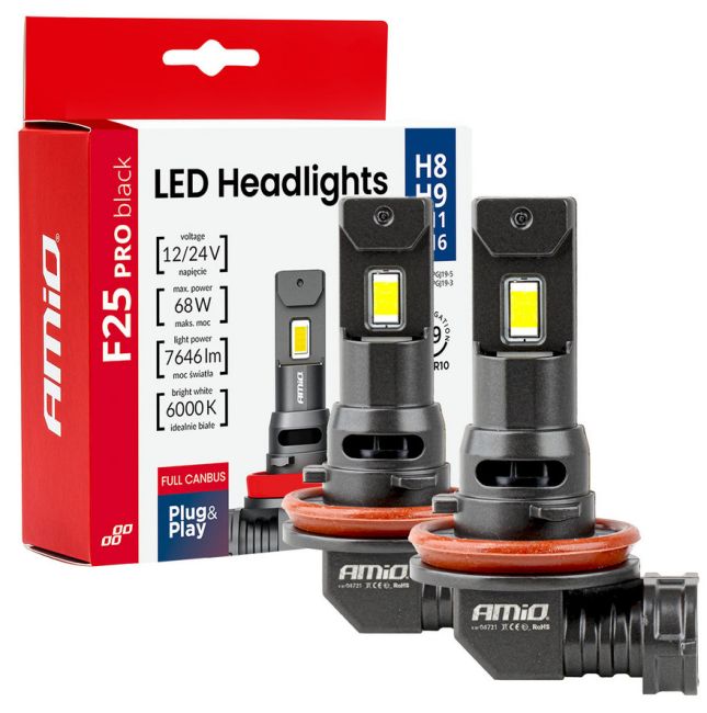 F25 PRO BLACK Edition – LED Headlights H8/H9/H11/H16, 12/24V, FULL CANBUS, 7646 lm