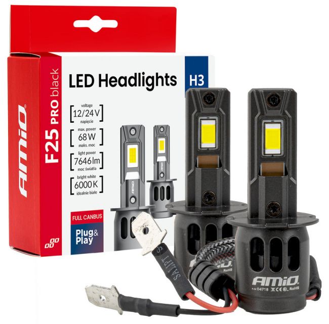 F25 PRO BLACK Edition H3 LED -ajovalot ovat edistyksellinen valonlähde ajoneuvojen ajovaloihin. Sisäänrakennettu FULL CANBUS -järjestelmä takaa täyden yhteensopivuuden ajoneuvoihin, joissa on palaneen lampun valvonta – ilman virheilmoituksia tai häiriöitä.