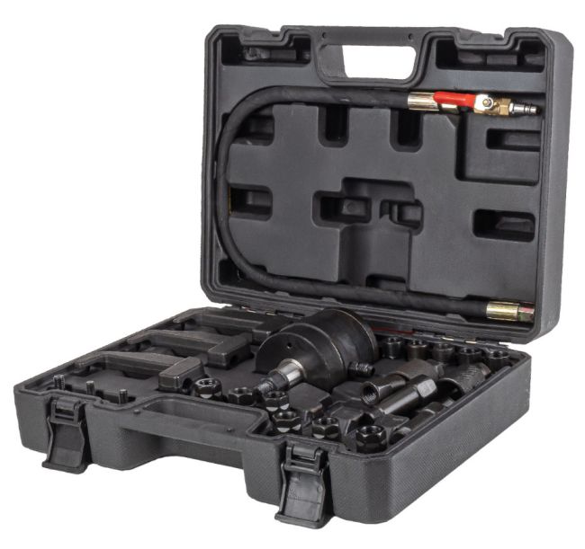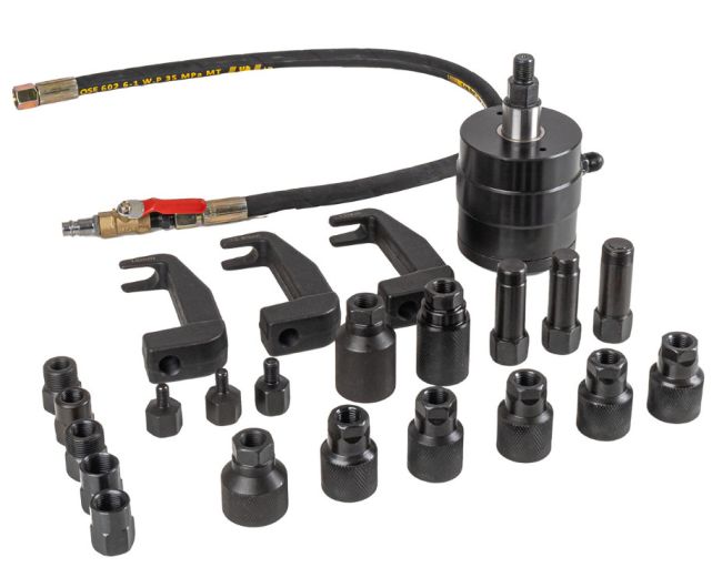 Ammattikäyttöön suunniteltu pneumaattinen suutinirrotussarja, joka on tarkoitettu jumittuneiden dieselruiskutussuuttimien irrotukseen. Korkeataajuinen paineilmaan perustuva iskutekniikka siirtää energian suoraan suuttimen varteen, mikä poistaa tarpeen raskaalle käsivoimalle ja vähentää sylinterikannen vaurioitumisriskiä.