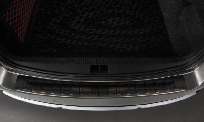 Merkkikohtainen lastaussuoja takapuskuriin. Materiaali kiillotettu ruostumaton teräs. Puskurinsuoja suojaa auton puskuria ja tavaratilan reunaa tavaroiden lastauksen aikana naarmuilta ja kolhuilta. Lastaussuojaa voi käyttää myös piilottamaan vanhat puskurin vauriot. Kiinnitys tapahtuu helposti mukana tulevalla kaksipuoleisella teipillä. Mitat 91 x 10 cm