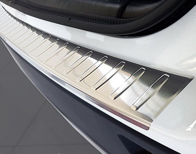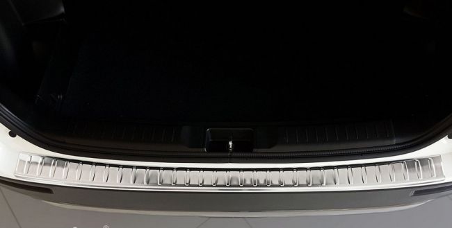 Merkkikohtainen lastaussuoja takapuskuriin. Materiaali kiillotettu